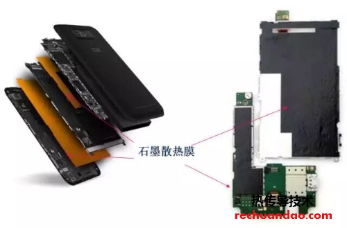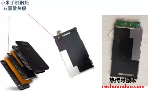 小米手机的石墨散热膜散热片的在机身内贴附在中间的钢托金属板上面,屏蔽扩散电池热源和分散集中于屏幕的热量,把热量传递到钢托以及机壳,形成更大的有效散热面积.形成有效的散热路径.