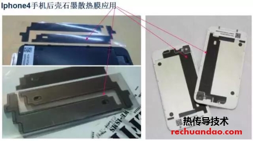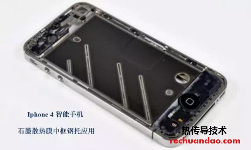 Iphone 4 智能手机触摸屏背板钢托石墨膜主要把热量均布在触摸屏及中框钢托上,避免局部热点和避免触摸屏超过摄氏41度时触摸不灵敏的情况.