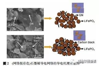 本课题组进一步将石墨烯和碳黑直接制成杂化材料,既可以防止石墨烯片层的团聚, 改善石墨烯 导电剂的分散,又能够进一步提高电子导电效率,用于LFP体系时表现出了良好的二元导电剂优势. 所以,使用石墨烯/导电碳黑二元导电剂确实可以搭建更为有效的导电网络,达到降低成本和提高能量密度的效果,具有很高的实用前景.