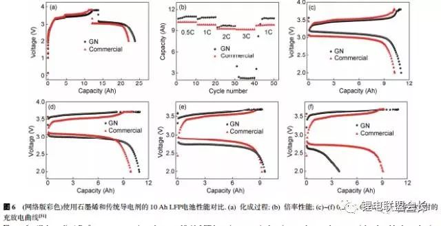(1) 电子电导率高, 使用很少量的石墨烯就可以有效降低电池内部的欧姆极化;