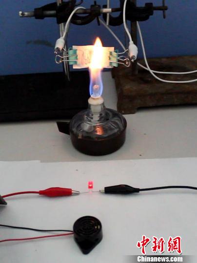 新型火灾自动报警耐火壁纸在火灾发生时的快速响应(几秒钟内)与持续报警(5分钟以上)模拟实验 。中科院上海硅酸盐研究所 供图