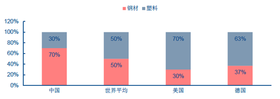 ▲我国塑钢比与国际水平差距明显
