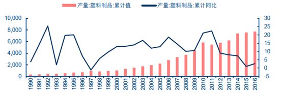 ▲我国塑料制品产量持续增长(单位:万吨)