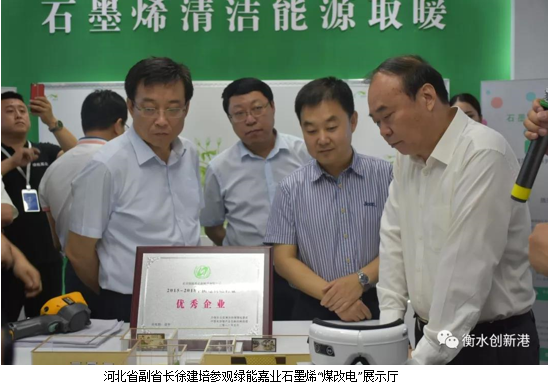 听完王敏董事长介绍后,河北省副省长徐建培对绿能嘉业在“石墨烯快取暖”方面的突出成就表示了极大的认可。
