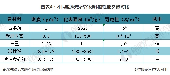 石墨烯在超级电容器的应用,可显著提高能量密度。受到电极材料的制约,现有超级电容器能量密度大都低于50Wh/kg。石墨烯的比表面积为2630m2/g,将其应用于超级电容电极材料,可显著提高超级电容器的能量密度。目前已有实验室成果做到储能密度达170Wh/kg,大大超过现有超级电容器的能量密度。但是在电容器组装过程中,因为石墨烯团聚现象的存在,使得相应超级电容器的能量密度受限,现有研究方向是通过改变电解液种类、石墨烯形貌以及石墨烯基复合电极材料为主。