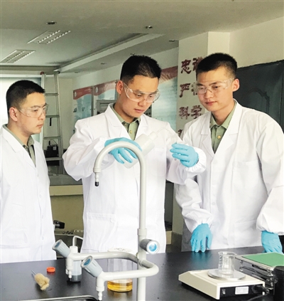 黄贤俊(中)与同事在进行实验 谭芳摄