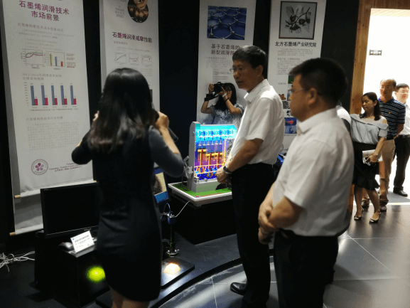 在鹿寨石墨烯产业园考察点,调研组视察了展厅,考察了广西云亭紫荆石墨烯应用技术和广西清鹿新材料科技有限责任公司。费副主席一行认真听取项目负责人和专家介绍,了解研发成果转化、项目孵化落地、石墨烯车辆应用研究院推进、改性石墨烯EPS制品生产、石墨烯粉体生产线建设情况。费副主席兴致勃勃,现场询问了专家许多问题,并对产业园的推进工作给予了充分肯定,最后强调:一是要引入海内外高水平的石墨烯研发力量,力争三年内实现石墨烯研发实力进入国内第一方阵,自治区、市、县三级政府给予支持;二是引进包括原材料制备、下游应用等石墨烯相关企业,形成产业集聚;三是市、县积极研究好的方案,要有强有力的班子推进;四要做好产业基地和石墨烯车辆应用研究院的规划,建成有特色的产业基地,园区内建筑突出科技特色和宜居,产城融合。