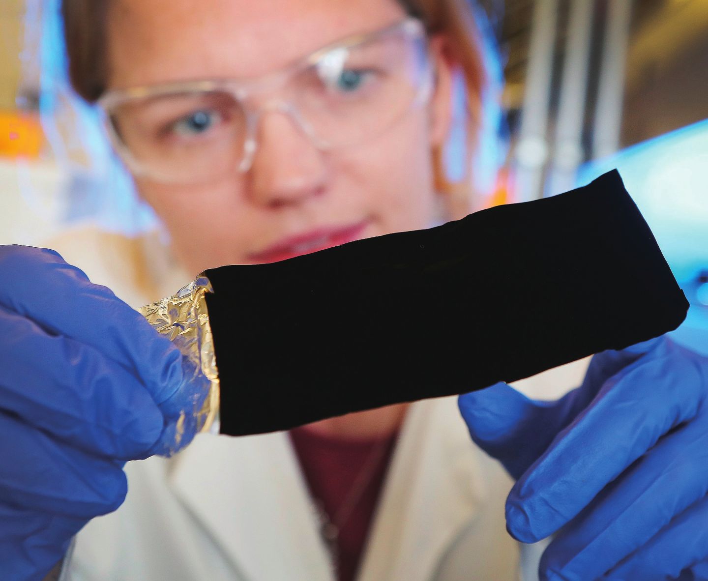 研究人员将碳纳米管平行排列,组成99%中空的片状材料。光子落在材料上,迷失在碳纳米管之间,找不到出路,因为几乎没有可供反射的物质。如此便可捕获大量光线。