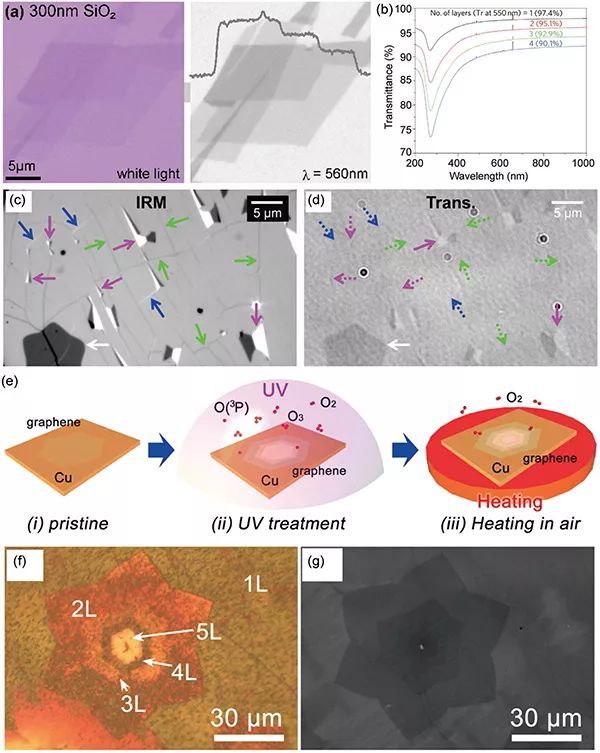 (a) 在白光(左)和单色光(右)照明下SiO2/Si基底上石墨烯的OM图像;