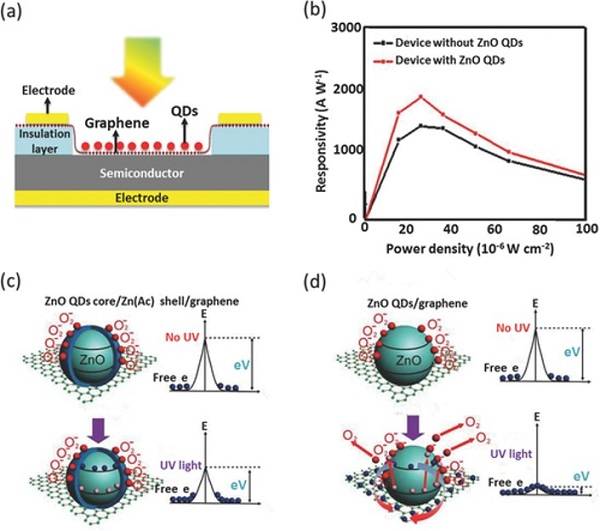 (a)量子点/石墨烯/半导体光电探测器的示意图