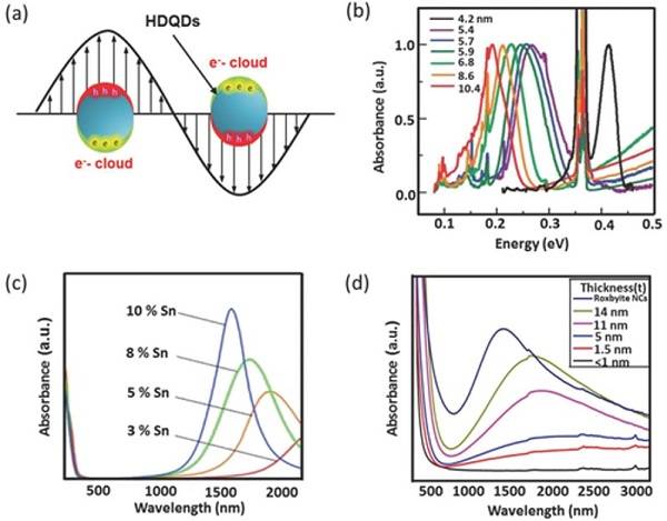 (a)光生载流子集体振荡所引起的重掺半导体量子点的局域表面等离子共振示意图
