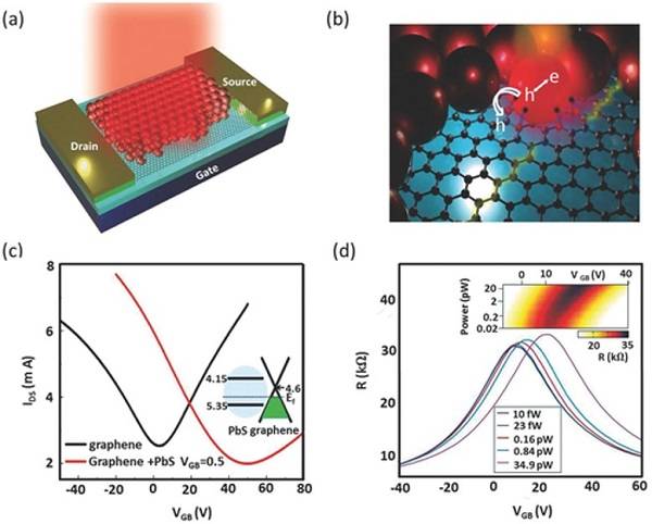 (a)PbS QD敏化的石墨烯光电晶体管的器件结构
