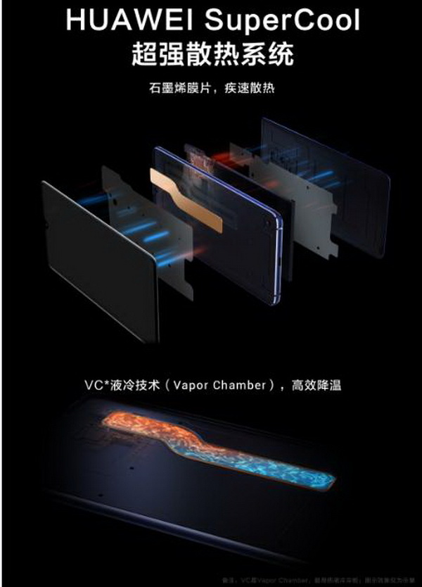 上面说的是芯片本身的自控能力,在散热方面,PC级的液冷散热系统,和石墨烯材料能够帮助华为Mate 20 X的散热系统发挥的效率更强。