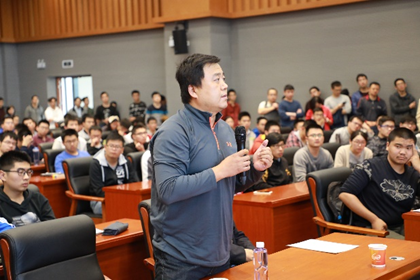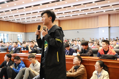 新启用的物质科学大楼学术报告厅座无虚席,许多学生在过道和讲台前席地而坐,表现出对科学的极大热情。