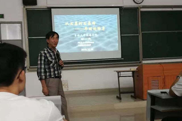 10月30日晚上7点,材料与环境学院邀请吉林大学珠海学院的田一光教授,以《从石墨到石墨烯—华丽转身》为题,为材料学院的师生们带来了一场精彩的学术讲座。讲座由材料科学与工程专业负责人马艾丽老师主持,专业教师吕京美、李冲、郭冰之、杜武青及材料科学与工程专业的同学们共同聆听了本场讲座。