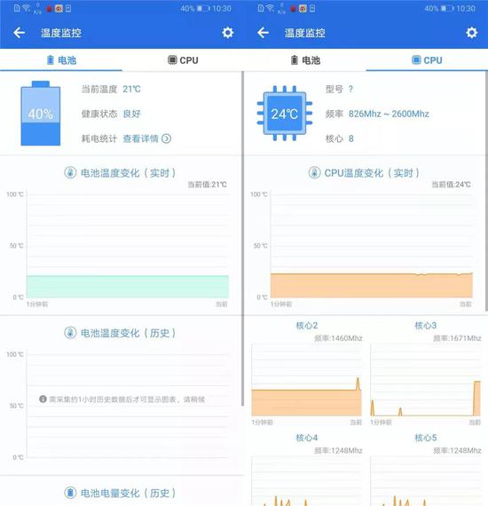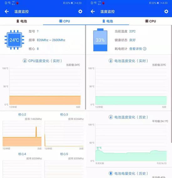 那么这套系统实际表现怎样呢?下面我们就通过两款目前非常火的游戏来看下。首先我们先通过王者荣耀来测试下,在测试前我们可以看到电池以及CPU的温度分别为23℃以及24℃。
