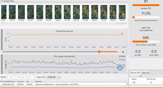 同时经过一小时持续游戏后,笔者也是使用了GameBench软件测试了游戏的帧数情况,可以看到,即便已经经过了1小时的持续游戏,在高帧率模式下进行王者荣耀时依旧可以非常稳定的维持在60帧,基本没有什么掉帧现象。