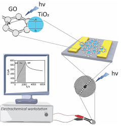 在11月的Carbon期刊中,来自新南威尔士大学的研究团队提出了一种新的紫外线传感器设计:一种基于氧化石墨烯(GO)光还原的设计。通过将GO片和二氧化钛(TiO2)纳米颗粒同时沉积到交叉指状电极,获得制造传感器。TiO2具有大的带隙,是一种紫外线敏感的光催化剂。当在碳和乙醇存在下照射时,TiO2的光生电子转移到GO片上,对其发生还原,从而改变其导电性。