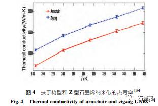 2010年William等采用平衡分子动力学模型计算了平滑边缘和粗糙边缘石墨烯纳米带的热导率(如图1所示),对于宽度相同的石墨烯纳米带,平滑边缘纳米带的热导率大于粗糙边缘纳米带的热导率。