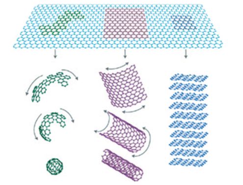 研究者发现当石墨烯的长径比足够大时,可以自发地折叠成多折结构或者螺旋结构。通过分子动力学模拟证明了石墨烯纳米带可以螺旋插入和包裹碳纳米管形成螺旋结构,这种结构已经非常接近在大自然中发现的螺旋线,衰减的势能表明该过程是自发进行的。经过分析可知,石墨烯纳米带与碳纳米管间的范德华作用、π-π共轭作用以及石墨烯开放边缘碳原子的悬浮的σ-轨道都对这种独特的现象产生影响,两条石墨烯带可以形成一种类似于DNA的双螺旋结构。
