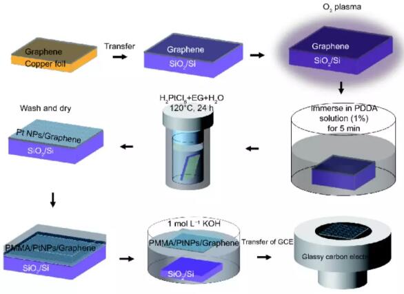 从氧化石墨中获得石墨烯材料在负载金属催化剂中具有很大的应用潜力,但在通过化学气相沉积制备的高质量石墨烯(CVDG)上均匀负载金属纳米粒子仍然是一个挑战。中国科技大学朱彦武课题组成功制备了在CVDG上均匀负载具有约3.3?nm尺寸的铂纳米粒子的超薄复合薄膜(Pt-CVDG),并且这种薄膜可通过类似CVDG转移的方法转移到目标衬底上。本工作近期发表于Science China Materials, 2018, doi:10.1007/s40843-018-9366-x。
