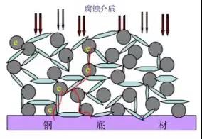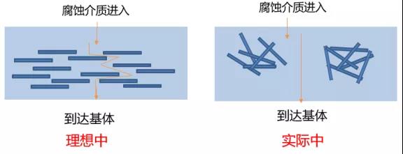 (2)延长腐蚀介质的扩散路径:腐蚀介质的扩散路径被延长,基体使用寿命增长。
