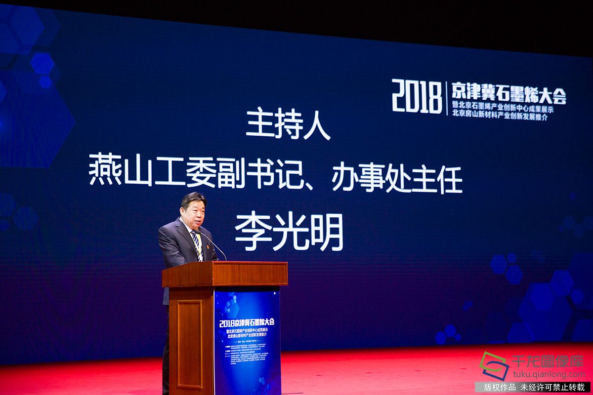 11月27日,2018京津冀石墨烯大会暨北京石墨烯产业创新中心成果展示、北京房山新材料产业创新发展推介在房山区举办。图为北京市房山区燕山工委副书记、办事处主任李光明主持会议( 图片来源:tuku.qianlong.com)。千龙网记者 于颖摄