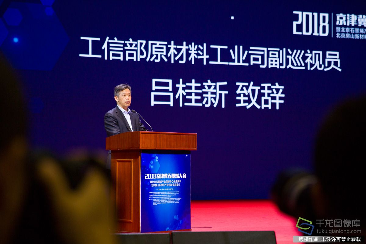 11月27日,2018京津冀石墨烯大会暨北京石墨烯产业创新中心成果展示、北京房山新材料产业创新发展推介在房山区举办。图为工信部原材料工业司副巡视员吕桂新致辞( 图片来源:tuku.qianlong.com)。千龙网记者 于颖摄
