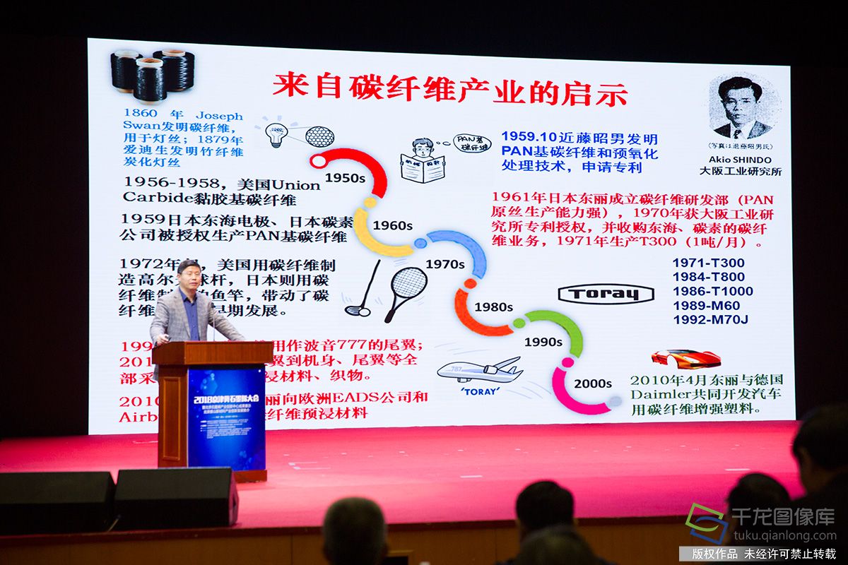 11月27日,2018京津冀石墨烯大会暨北京石墨烯产业创新中心成果展示、北京房山新材料产业创新发展推介在房山区举办。图为行业专家在台上做主旨演讲( 图片来源:tuku.qianlong.com)。千龙网记者 于颖摄