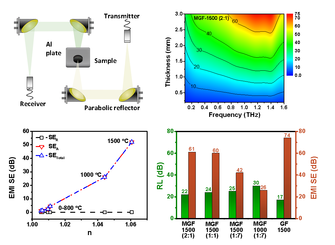 太赫兹技术是21世纪的重要新技术领域,包括太赫兹无线通讯、数据传输、太赫兹成像及太赫兹探测等方面取得了一系列突破性进展,在民用科技及国防军事领域具有重要的应用前景。例如,太赫兹无线数据传输系统传输速度可以达到10-100 Gb/s,同时太空环境下太赫兹波的传输几乎没有损耗,使得太赫兹信息通讯技术有望成为太空数据传输的重要手段。而随着太赫兹技术在电子设备、信息通讯、雷达探测等前沿领域的推广,太赫兹隐身及屏蔽材料的研发备受关注,在电磁防护、信息保密、国防安全等方面具有非常重要的研究意义。