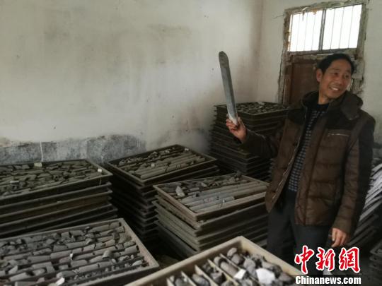 图为程立芳展示石墨矿藏探井勘探样品。 王祎 摄