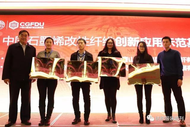 此外,现场还举行了联盟分析检测中心揭牌仪式。最后联盟为北京服装学院、诺斯贝尔化妆品股份有限公司、中国石油化工股份有限公司齐鲁分公司腈纶厂、魏桥纺织股份有限公司、泊头市经纶纺织有限公司、唐山三友集团兴达化纤有限公司等12家单位颁发了“中国石墨烯改性纤维创新应用成果奖”,授予北京服装学院、诺斯贝尔化妆品股份有限公司、唐山三友集团兴达化纤有限公司、权健自然医学科技发展有限公司等4家单位“中国石墨烯改性纤维创新应用示范基地”称号。