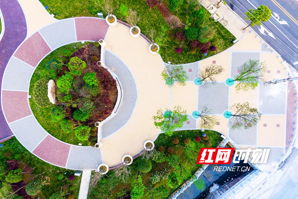 赤橙黄绿青蓝紫,俯瞰中的高新区的礼耕小游园宛如一个天然调色盘,一草一木,一砖一石皆为情。