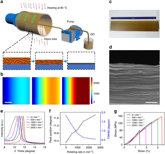 图1:高取向紧密氧化石墨烯薄膜的制备及表征