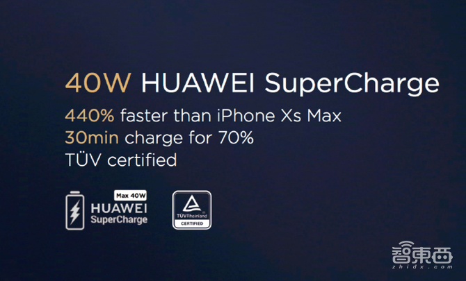 据了解,从Mate 10系列开始,华为手机就获得了德国TV莱茵安全认证(TV认证是产品在德国和欧洲销售的通行证)。今年Mate 20系列中搭载的40W超级快充同样获得了莱茵的安全认证。