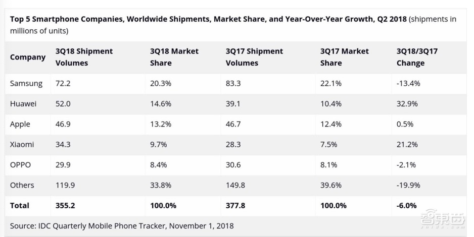 今年中国头部手机厂商表现抢眼,在全球智能手机市场整体销量下滑之际,仍逆势保持着高速增长,其中华为和小米两家的市场份额增速惊人,二者第三季度出货量相比于去年同期分别增长了32.9%和21.2%。在刚刚过去的12月25日,华为宣布今年手机发货量超过2亿台,而这距华为宣布今年全球发货量超过1亿台,仅相隔5个月。