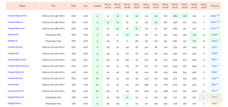 华为Mate 20系列的三款手机自发布以来,包揽了AI Benchmark跑分测评(由苏黎世联邦理工学院开发)的前三名,并且一直霸榜至今。