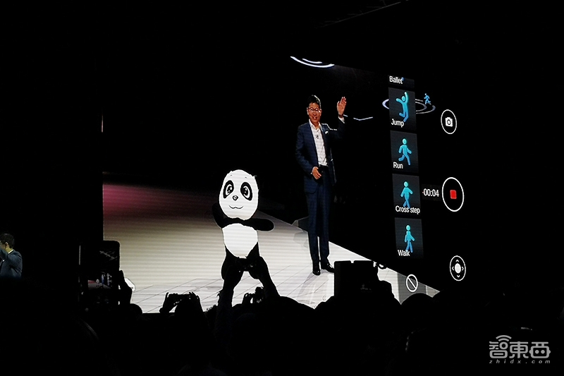 Mate 20 Pro前置配备了3D深度感知摄像头,配合麒麟980的AI算法和算力支持,能够快速采集玩偶的外部特征,并根据AI算法实现玩偶的拟人化,可以实现奔跑、舞蹈等多种肢体动作。通过AR技术,3D仿生的玩偶还可以与实景进行结合。在发布会的现场,余承东就展示了与Mate 20 Pro生成的3D仿生熊猫玩偶一起现场合影。