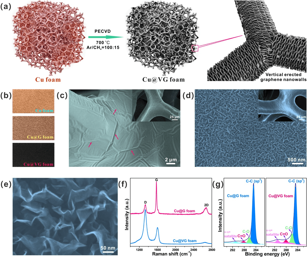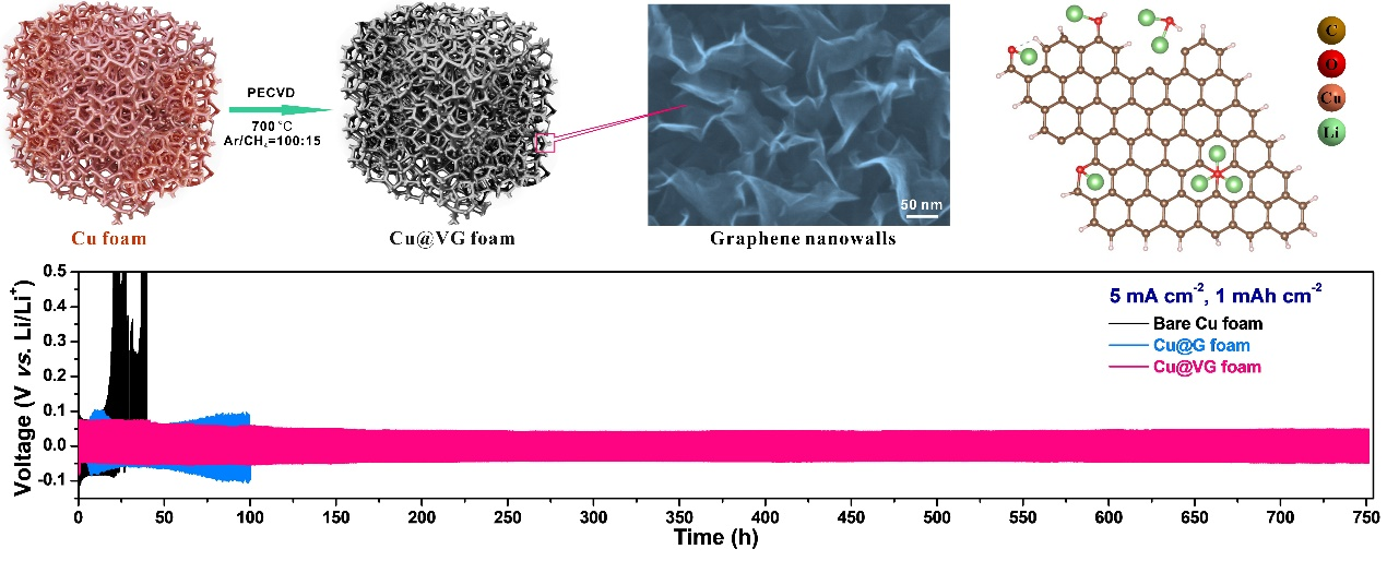 1. 利用直接PECVD技术原位构建新型垂直石墨烯纳米墙-铜泡沫(Cu@VG)宿主材料;