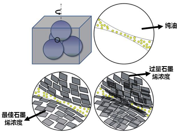 由于改性石墨烯能引起两接触面的滚动效应,并在摩擦表面形成润滑膜,从而使润滑油耐磨性得到提高。石墨烯在油基纳米流体中的优异耐磨性主要归因于其极大的机械强度和拓扑结构。