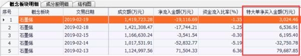 近5个交易日石墨烯概念板块特大单净买入金额(图片来源:Choice金融终端)