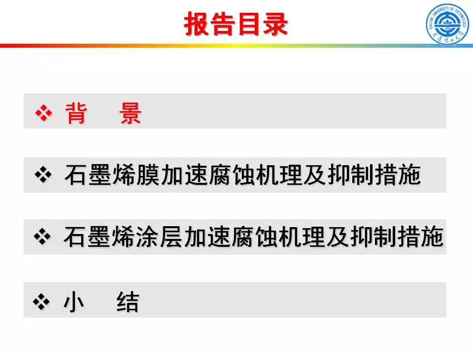 刘贵昌教授报告《石墨烯填料促进金属腐蚀的影响因素研究》 石墨烯网 • 2019年2月25日 13:35 • 研报资料 • 阅读 2176 本文来自中国腐蚀与防护网,本文观点不代表石墨烯网立场,转载请联系原作者。 刘贵昌大连理工大学 赞 (0) 石墨烯网 0 生成海报 新形势下国家高新区招商机制和体制的探索 基于厦门火炬高新区招商机制和体制改革的实践 上一篇 2019年2月25日 中国石墨烯产业分布格局分析:聚集东部沿海地区(附图表) 下一篇 2019年2月25日 相关推荐 邱介山教授莅临材料学院进行学术讲座 2016年9月9日 899000 科研进展 (纯计算)大连理工大学蒋雪团队Adv. Funct. Mater.: 锂掺杂石墨烯的超导极限 2024年11月8日 453000 科研进展 大连理工《J Mater Chem B》:超高灵敏度的自修复和防冻石墨烯-水凝胶-石墨烯夹心应变传感器 2021年5月25日 1.7K000 科研进展 西安交大在超级电容器用二维石墨烯复合材料的设计与构筑方面取得新进展 2019年7月14日 2.0K000 科研进展 欧米伽书评|Nat Commun.|智能可切换溶剂的石墨烯基膜用于分子级筛分 2025年6月26日 215000 科研进展 石墨烯,又登Nature子刊! 2024年5月24日 547000 科研进展 大连理工大学《EEM》:综述!无缺陷和无污染的石墨烯薄膜的高效转移研究进展 2025年4月21日 304000 科研进展 CEJ:0.1秒3000K闪蒸石墨烯,水泥抗压/抗折性能提升16.8%/37.2% 2024年10月22日 649000 科研进展 大连理工《ACS AMI》:N掺杂石墨烯气凝胶作为微生物燃料电池的多功能空气阴极 2021年10月25日 1.8K000 科研进展 发表回复 请登录后评论...登录后才能评论 提交