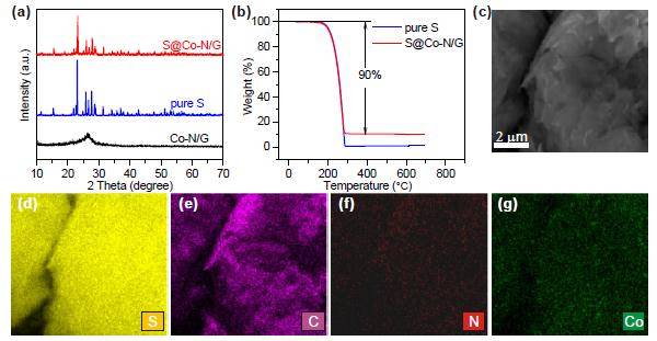 a) Co-N/G、纯S和S@Co-N/G的XRD图谱;