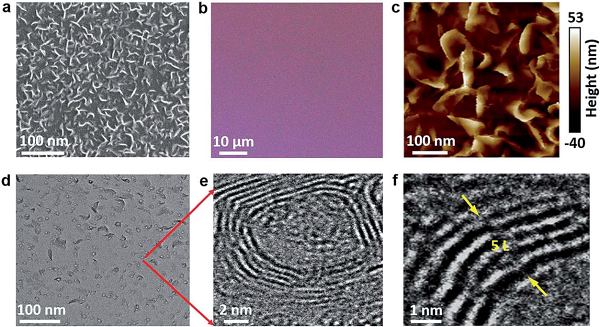 图2. 等离子体化学气相沉积技术在柔性玻璃上生长石墨烯的结构表征