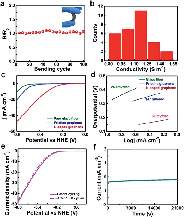 图5. 在玻璃纤维上直接生长氮掺杂石墨烯的电解水析氢反应性能