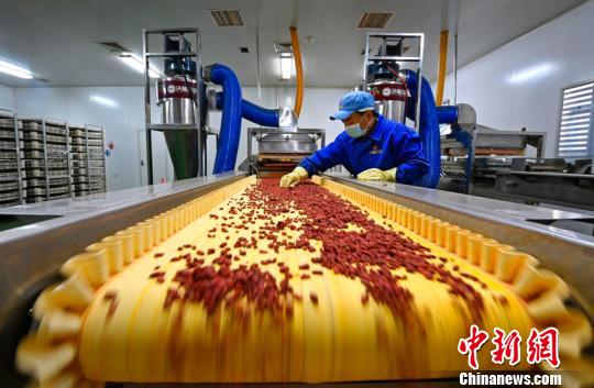 沃福百瑞生产车间枸杞干果生产线。 额丽其格 摄