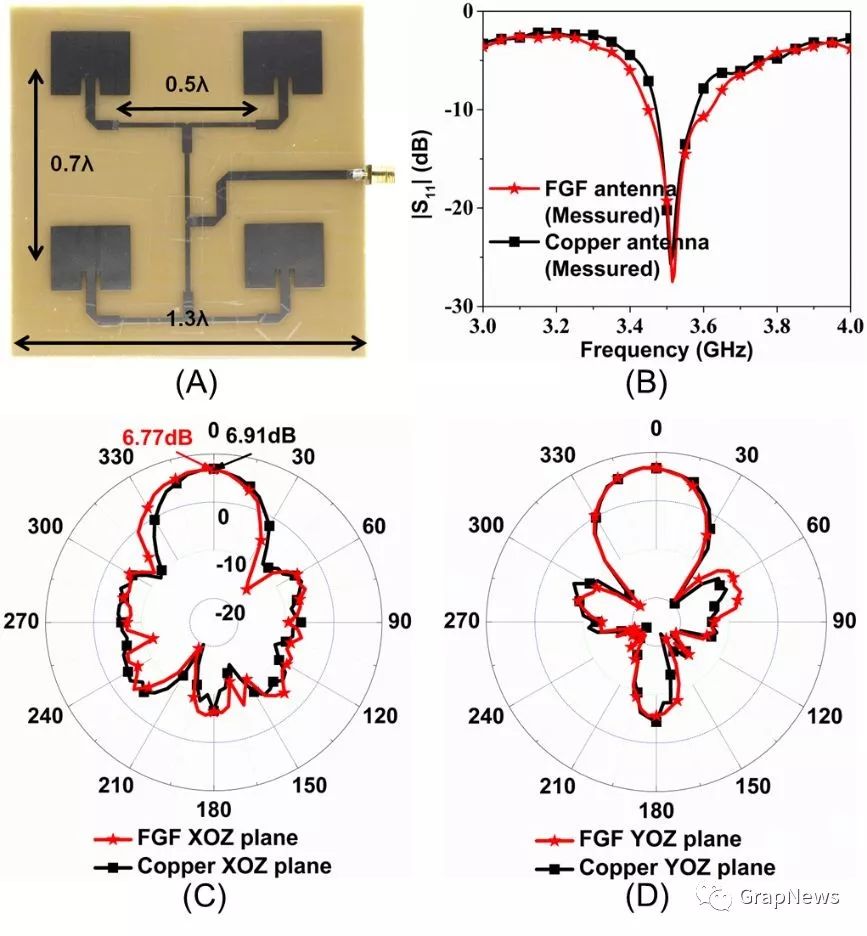 图1. 石墨烯自支撑薄膜天线阵列的性能