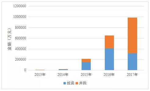 据CGIA Research统计,从2013到2017年上市企业发生石墨烯相关投资并购事件共55项,涉及金额近187亿元,从2013年到2017年石墨烯产业投资并购金额大幅度增长,2017年投资并购金额达到65亿元。从投资和并购所占的比例来看,从2013年-2016年,投资项目所占比重较大,2017年以并购为主。说明在2016年之前,项目以新建为主,但随着石墨烯产业发展,并购比例逐渐加大,而到2017年并购占据了大部分分额,说明2017年开始产业链开始进一步整合,石墨烯产业开始大规模的洗牌。<