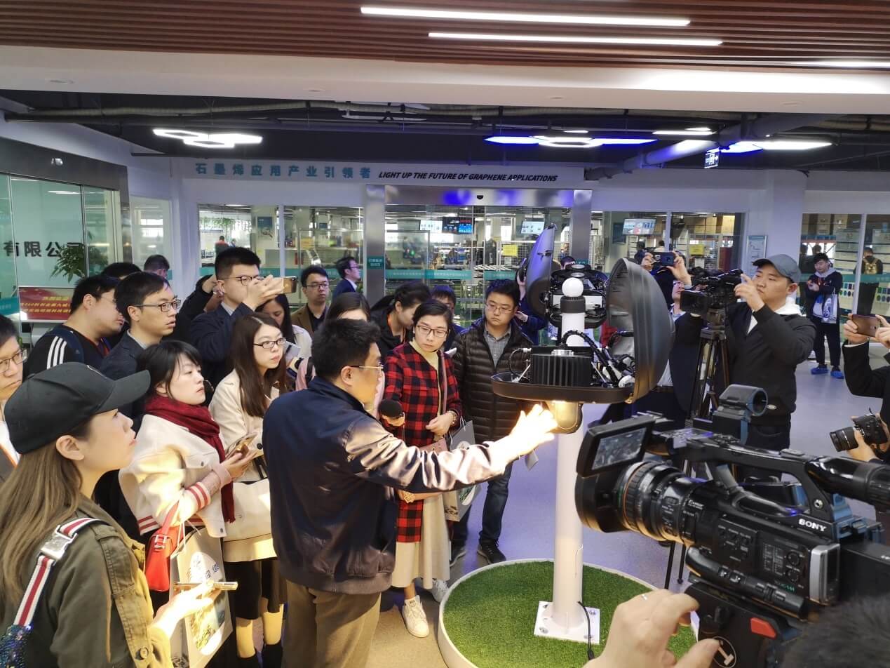 明朔科技创始人兼总经理陈威博士和副总经理江维陪同采访团参观了石墨烯应用展厅、道路物联网应用展厅和石墨烯符合材料智慧工厂,并接受了40多家媒体的群访。陈威博士向媒体记者着重介绍了公司发展历程、技术优势、产品特性、核心业务和战略目标等。