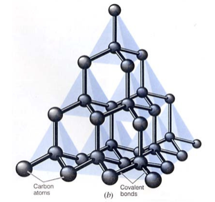 例如金刚石的结构为等轴晶系四面六面体立方体与六方晶系钻石,碳原子按四面体成键方式互相连接,组成无限的三维骨架,是典型的原子晶体,从而也形成了稳固的结构,间接使金刚石获得了硬度大,熔点极高,不导电的特性。